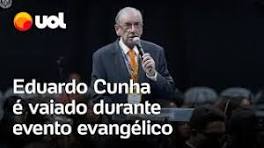 Eduardo Cunha é vaiado em evento evangélico e rebate gesto da plateia - O Globo Ex-presidente da Câmara foi cassado em 2016 e condenado durante a Lava-Jato. Ele subiu ao palco do centenário da Assembleias de Deus, ...